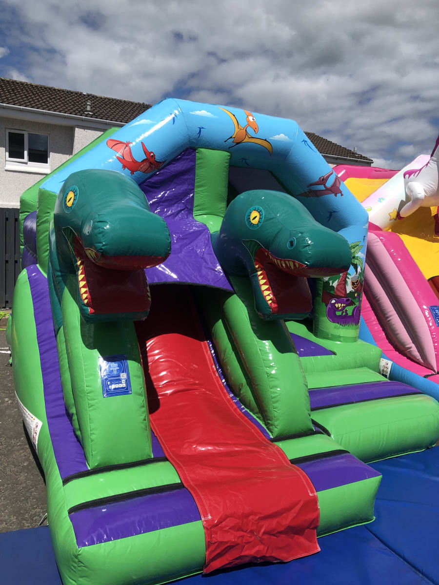 With impressive 3D dinosaurs either side of a front slide, this bouncy castle is hugely popular!