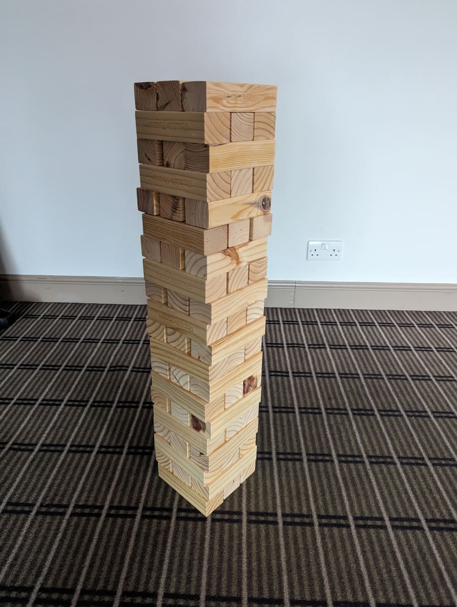Bring the fun to your next gathering with our Wooden Jenga set. Available for delivery in [Delivery Areas], this game is a must-have addition to your collection. Don't miss out on the excitement - order now!