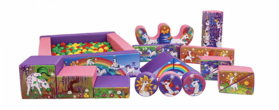 This great package comes with a beautiful unicorn ball pool and 18 pieces of soft play in various sizes and shapes. The images on the soft play and ball pool are beautiful unicorns great for your little ones imagination.