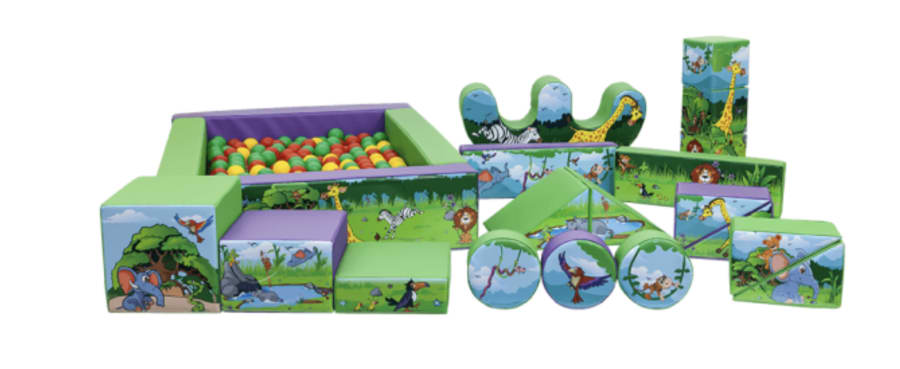 This great package comes with an awesome jungle ball pool and 18 pieces of soft play in various sizes and shapes. The images on the soft play and ball pool are great for your little ones imagination.